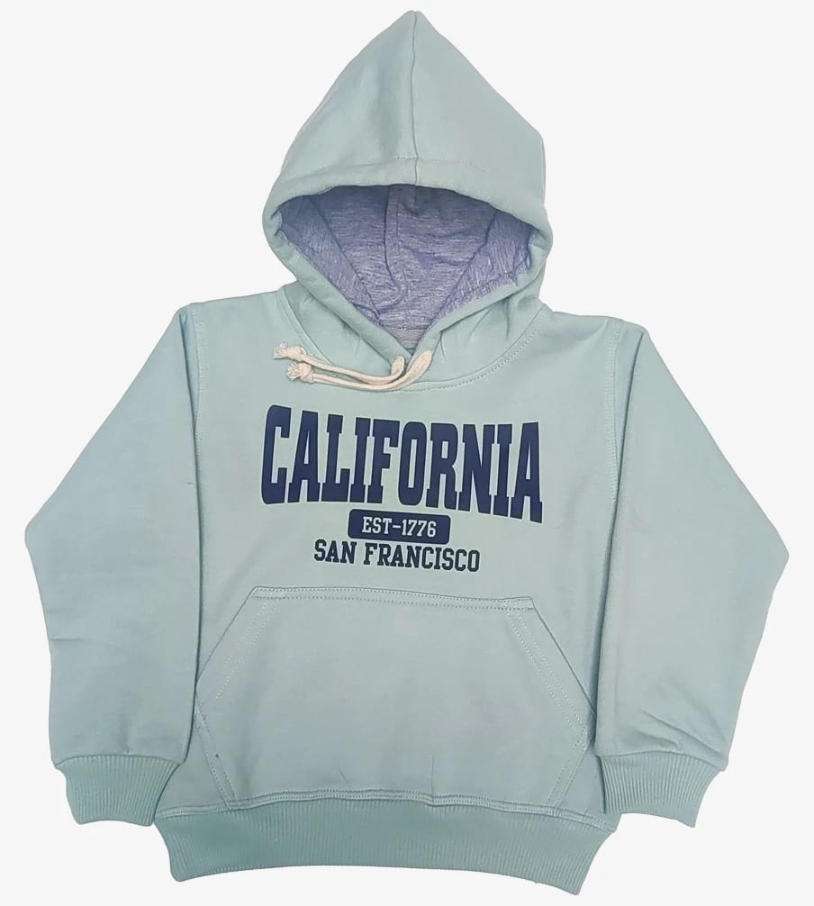 Mantén a tu pequeño abrigado y con estilo con nuestra cómoda sudadera con capucha. Hecha de suave franela, esta sudadera con capucha presenta un diseño clásico con capucha y un estampado "California" en la parte delantera. Perfecta para el uso diario.