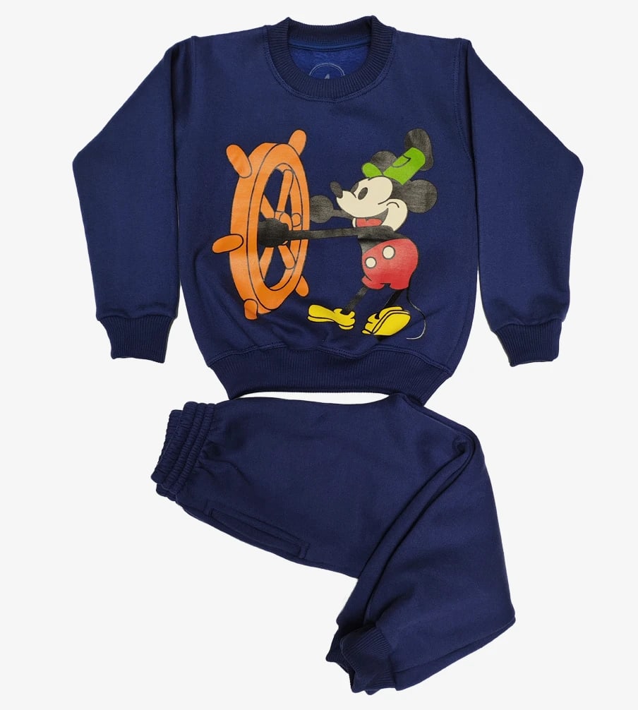 Convierte a tu pequeño en capitán de la diversión con este conjunto de franela. Su diseño de Mickey Mouse al timón le dará un estilo único y cómodo para jugar durante horas. ¡Perfecto para pequeños aventureros!