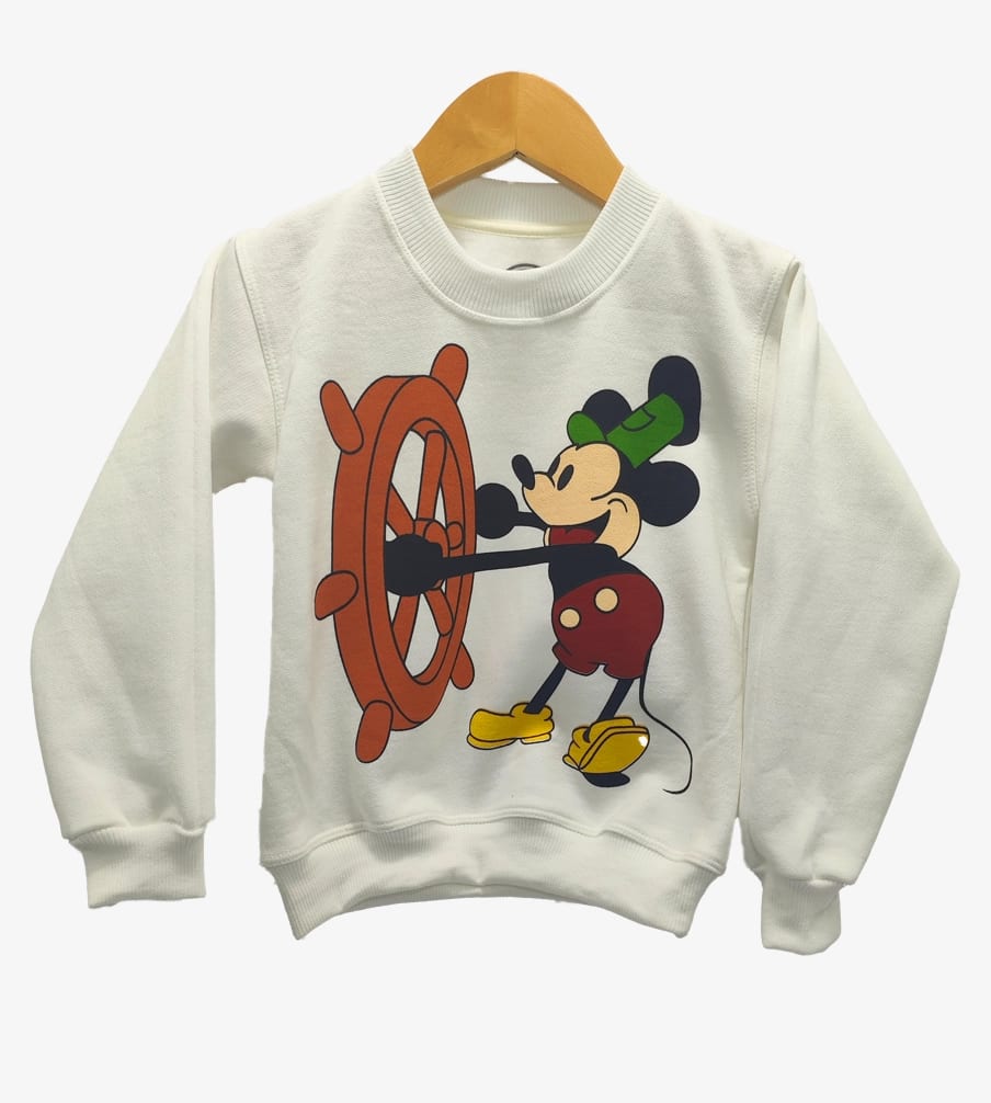 Adorable polera de Mickey Mouse para niños. Confeccionada en suave franela algodón, esta sudadera presenta un estampado clásico de Mickey al timón. Ideal para cualquier ocasión.