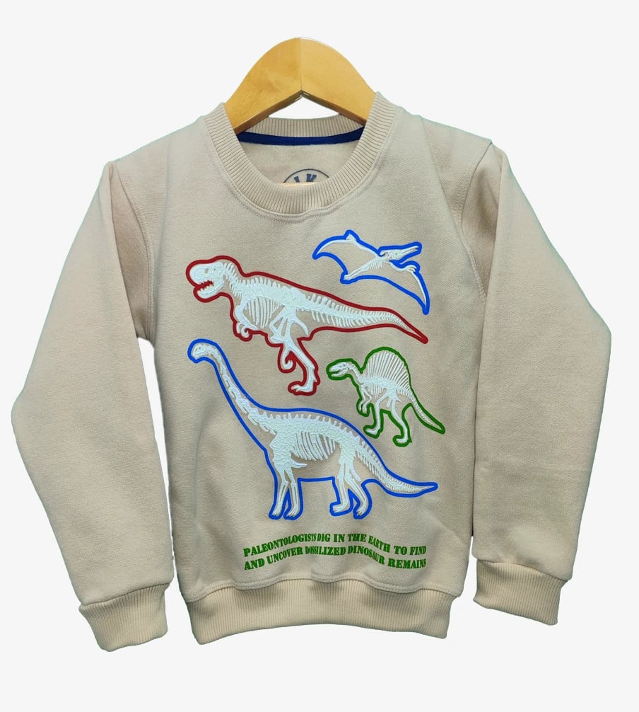 Destaca con esta polera de dinosaurios que brilla en la oscuridad. Hecha de suave algodón, perfecta para futuros paleontólogos. ¡Deja que la imaginación de tus pequeños brille! !Brilla en la oscuridad!