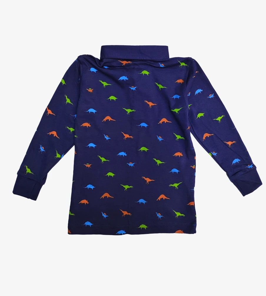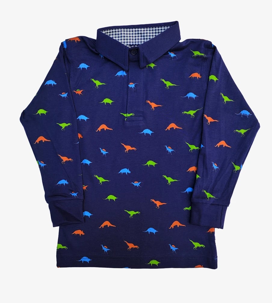 Tu pequeño explorador adorará este polo de algodón pima con estampado de dinosaurios. Suave, cómodo y perfecto para aventuras diarias.