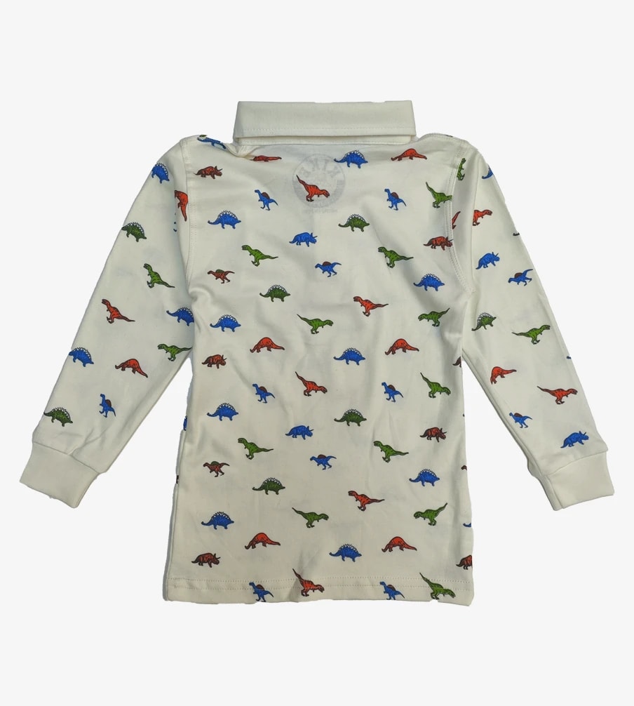 Divertido polo de algodón pima para niños con estampado de dinosaurios. Suave, cómodo y perfecto para cualquier ocasión.