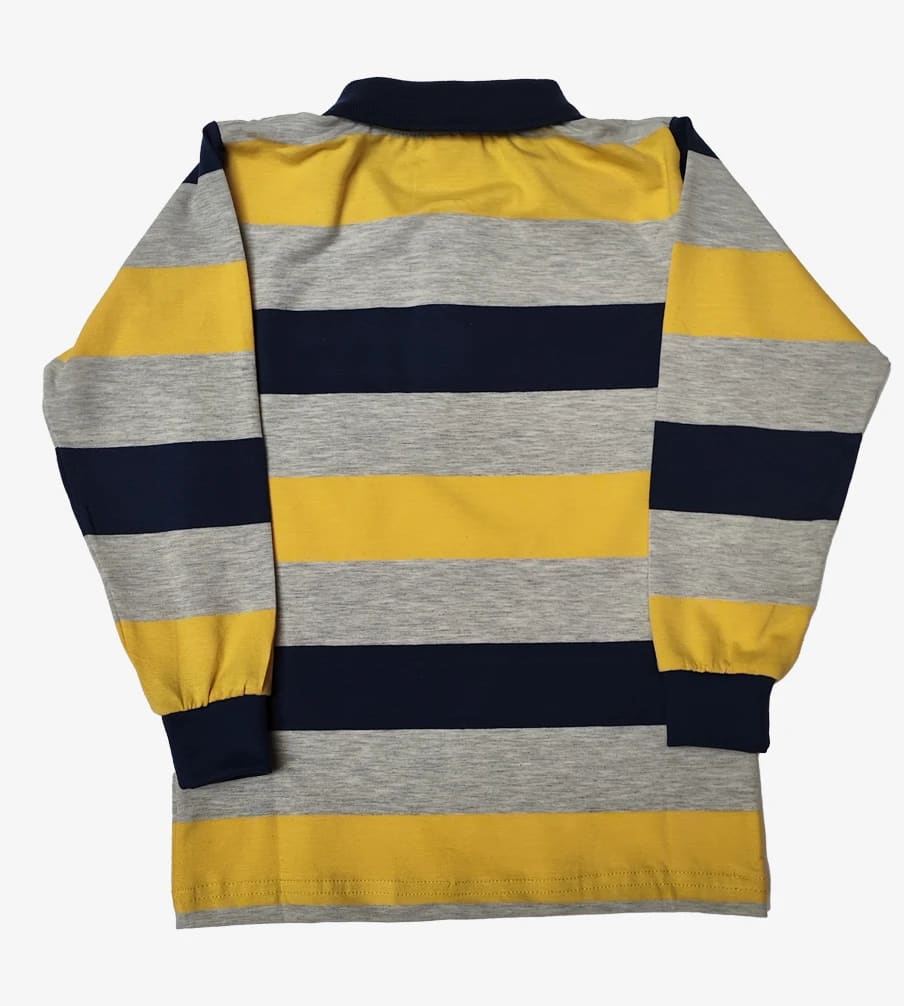 Polo a rayas amarillo y azul para niños, confeccionado en suave algodón pima. Ideal para un look casual y cómodo. ¡Viste a tu pequeño con estilo!
