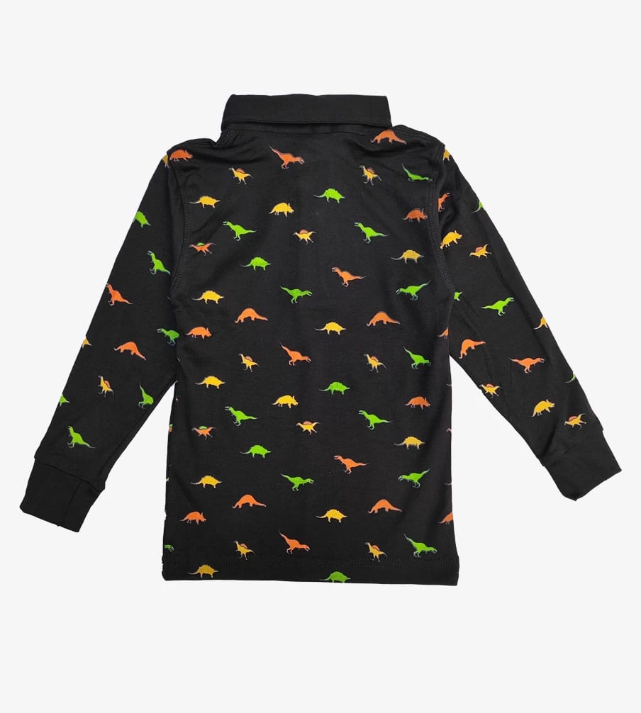 Divertido y cómodo polo de algodón pima para niños con estampado de dinosaurios. ¡Perfecto para pequeños exploradores! Confección de alta calidad para máxima suavidad y durabilidad.
