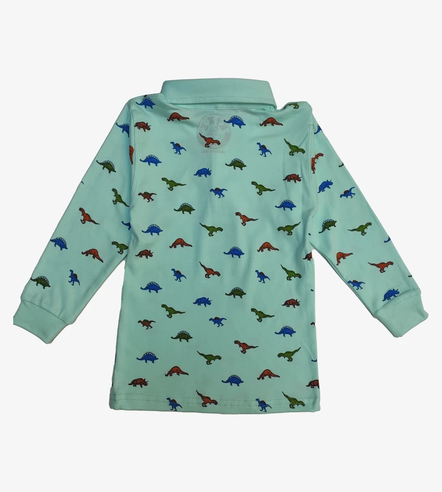 Tu pequeño explorador amará este polo de algodón pima con estampado de dinosaurios. Suave, cómodo y perfecto para cualquier aventura.